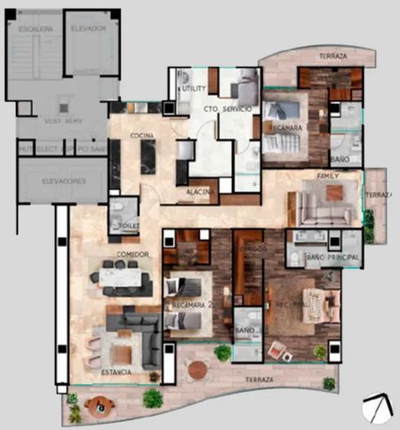 3 Recámaras 209.60 m2 + 36.89 m2 de Terrazas desde $14,021,169.55 MN