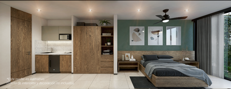 Recámara con clóset vestidor - Baños - Sala - Comedor - Cocina en “L”con barra - Clóset de lavado - Área de jardín privado o balcón - 1 Cajón de estacionamiento.