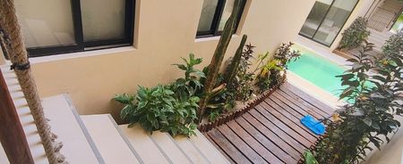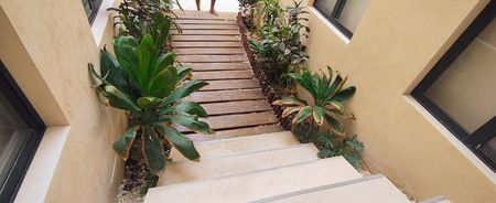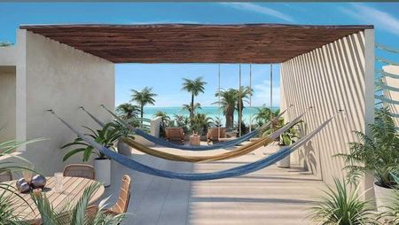 Cuenta con un enorme rooftop que tiene área de hamacas, baños, área de descanso, barra, jardineras y hermosa vista al mar, para poder disfrutar de las puestas del sol y ver los atardeceres. también tiene el área de la alberca con palapa, baños y jardines, para refrescarse en los días de intenso calor.