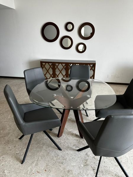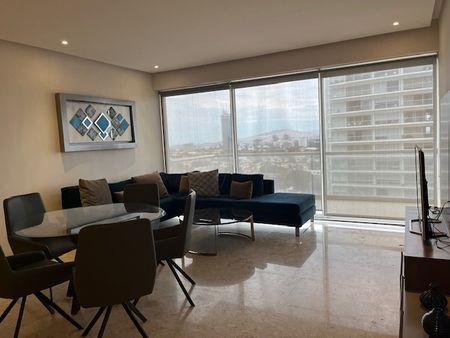 Departamento en Renta en Central Park en Guadalajara. Dos recámaras, dos baños, dos estacionamientos. Gran balcón. Dos estacionamientos uno en el corporativo y el otro en sótano de misma torre, en sótano uno. Alacena espaciosa. Refrigerador, lava- secadora, persianas, aires acondicionados, estufa, horno, extractor, triturador, calentador.