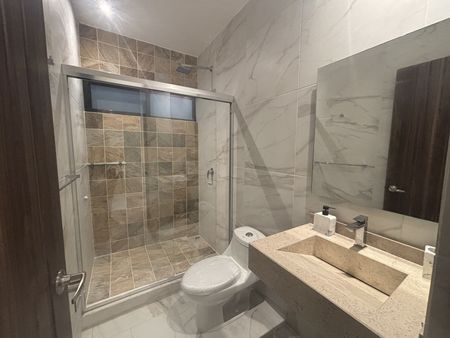 Cuenta con sala, comedor, cocina integral con granito y barra desayunadora, cuarto de lavado,2 recamaras, la principal con baño y closet y la recamara secundaria con closet comparte baño con área común.