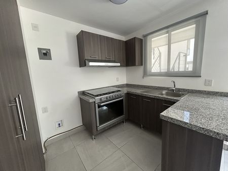 El departamento es de 2 recámaras la principal con baño completo, walking closet, espacio para cama king size con burós, la recámara secundaria tiene closet, 1 baño completo, amplia estancia y cocina equipada de granito con área de lavado.