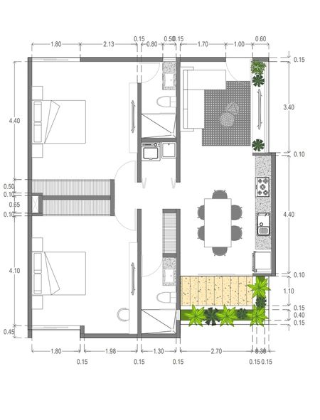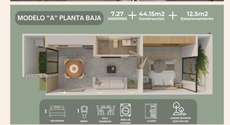 44.15 m2 de construcion mas 7.27 de jardin mas, 12.5m2 de estacionamiento