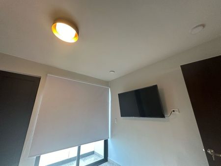 - habitación con closet ,cama, tv, aire acondicionado, persianas.
