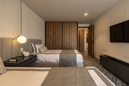 • Recámara secundaria I con baño completo, vestidor y acceso al balcón