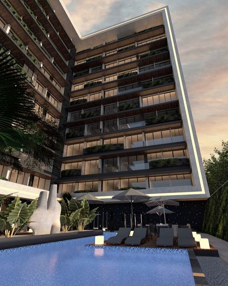 Consta de 89 departamentos divididos en 10 niveles, 113 cajones de estacionamiento y 4 modelos de departamentos.