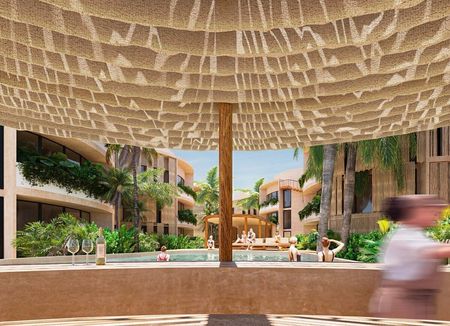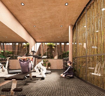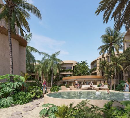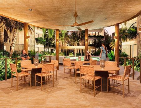 AMENIDADES: lobby, coffee station, tunel de bambú, mirador a 15m de altura, lunario con bar techado, barra abierta, área de mesas y sillas, área de asadores, alberca para adultos, bar seco y bar mojado en alberca, restaurante, palapa central, alberca infantil, salón de usos multiples, spa con jacuzzi, gimnasio, carritos de golf, bicicletas, kayak.