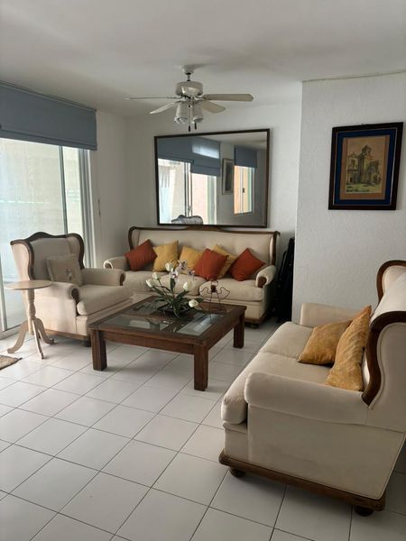 Hermoso departamento en venta en fraccionamiento privado, muy cerca del centro, se encuentra en planta baja, cuenta con dos recamaras la principal con closet y baño completo y la segunda con closet, área de comedor y sala con salida a terraza privada, cuarto de tv que se puede convertir en una tercer recamara, cocina integral, cuarto de lavado, dos lugares de estacionamiento techados e independientes, el condominio tiene seguridad las 24 horas, excelentes amenidades como alberca, jacuzzi, sauna, cancha de tenis, cancha de squash, diferentes áreas verdes y estacionamiento para visitas, se puede VENDER AMUEBLADO.
