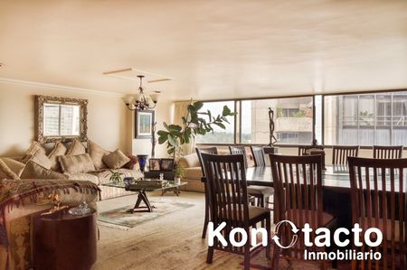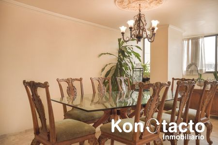 El departamento destaca por sus amplios espacios y abundante iluminación natural. La estancia es lo suficientemente grande como para albergar dos salas y un comedor, creando el ambiente perfecto para un verdadero family room. La cocina, amplia y equipada con desayunador, está acompañada por un patio de lavado y un cuarto de servicio integrado.