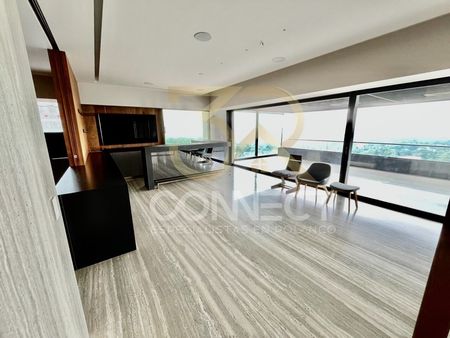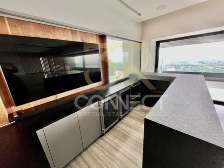 Notas importantes: Bar con caba de vinos refrigerada y cajones refrigerados La paredes del departamento están forradas de madera y en las recamaras muebles empotrados con diseño del Arq. Claudio Gantuz