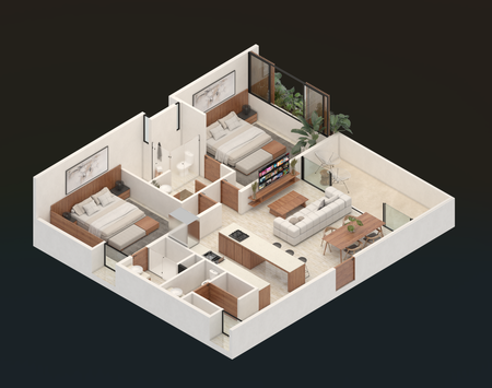 Su diseño tiene como prioridad la comodidad, confort natural y relación con la naturaleza, a través de una distribución arquitectónica que busca la amplitud y funcionalidad, excelente ventilación e iluminación y aperturas hacia jardines o balcones, dependiendo del nivel en el que se encuentre el departamento.