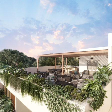 Complejo de 17 departamentos de 2 habitaciones ubicado en la privilegiada zona con alta plusvalía de Temozón Norte, rodeado de servicios y amenidades como: plazas, centros comerciales, supermercados, restaurantes, hospitales, escuelas y farmacias; así como de fácil acceso al interior de la ciudad, el periférico Lic. Manuel Berzunza y la carretera Mérida-Progreso.