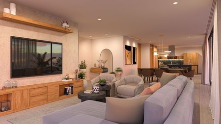 AMENIDADES: gimnasio, track, cancha de pádel, carril de nado, salón de yoga, spa, meditación, bar en las alturas / la Luz, miradores, alberca, bar de la alberca, zona de parillas, área multiusos / el salón, parques, parque de mascotas, jardín de meditación, ludoteca, jardines verdes.