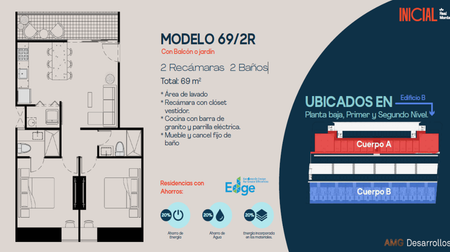 MODELO 69m2/2R DEPTO B-102 $ 2,559,000.00