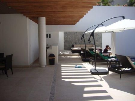 1 alberca en el edificio y otra frente a la playa, cancha de padel y de tenis, club de playa.
