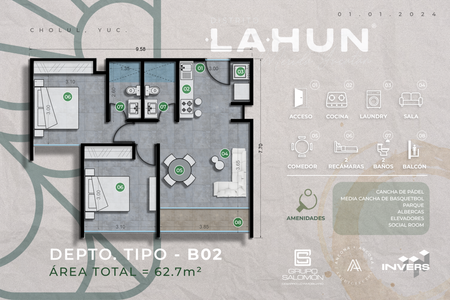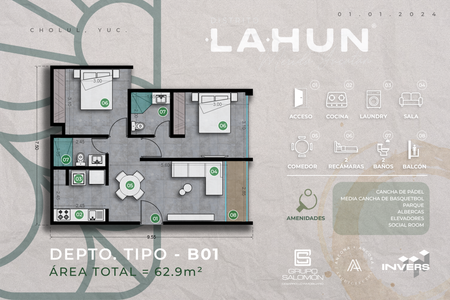 Departamento en venta Lahun, San Pedro Cholul. MOD B01-B02.