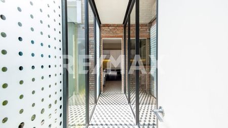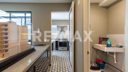 Extraordinario departamento de dos niveles, en venta en la Roma Norte, en un edificio innovador con diseño urbano conjugando un diseño contemporáneo con el estilo clásico de la Roma. Cuenta con sistema de captación pluvial, hidroneumático, estacionamiento con sistema de elevador. Solamente 14 departamentos. El departamento fue totalmente remodelado con acabados de lujo, que incluyen pisos de madera en las habitaciones, pisos de cerámica en la estancia, y techos de doble altura. La estancia es muy amplia e iluminada, y cuenta con medio baño de visitas y acceso al cuarto de lavado. Tiene una cocina integral cerrada, con cubierta de granito e iluminación indirecta en los muebles. Un pasillo cerrado con cristal templado da acceso al cuarto de servicio con baño completo. En la planta alta se encuentra el área familiar, con dos recámaras, ambas con baño completo y hermosos balcones con fachada de ladrillo. Cuenta con un Roof garden privado. Comunicado, cerca de Plaza Luis Cabrera, comercios, restaurantes, hospitales, escuelas. RDV585606
