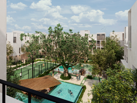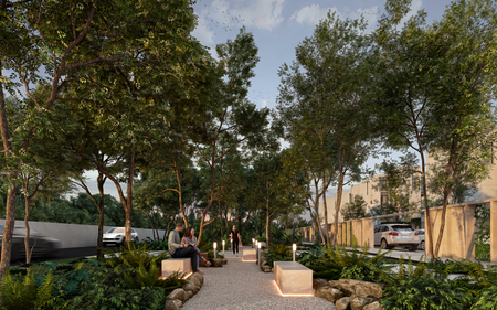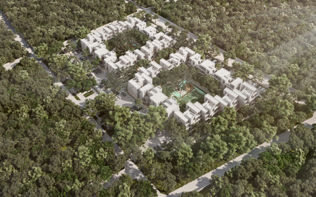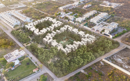 Proyecto de 125 departamentos divido en 25 módulos y cada uno con 5 modelos diferentes que plasman en cada espacio una simbiosis del residente con una comunidad consciente natural y paisajismo integral ubicado en Mérida, Yucatán.