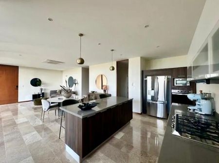 Acabados de lujo, piso de mármol, iluminación LED, cancelería anticiclónica, cubiertas de cuarzo, closets premium, acabados tipo Chukum.