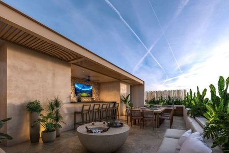 El desarrollo estará conformado de 18 departamentos divididos en 3 torres, cada una de tres niveles con un roof garden con área de asadores, sport bar y seguridad por medio de portón eléctrico.
