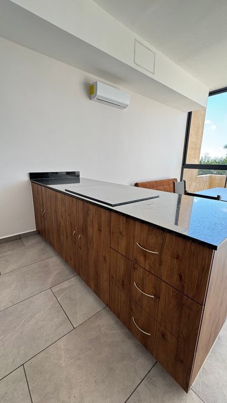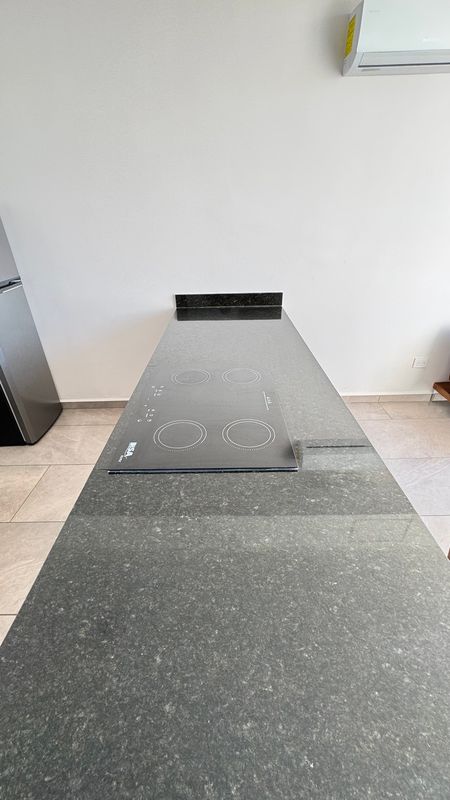 -Barra desayunadora con su estufa de inducción y acabado de granito.