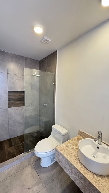 -Baños completo con cristal templado y acabado de mármol , separado de la habitación comparte con la habitación secundaria.
