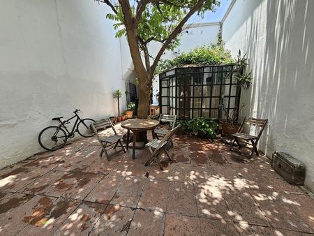 Tiene un hermoso patio central con gran árbol iluminado y mesita para una tarde de lectura