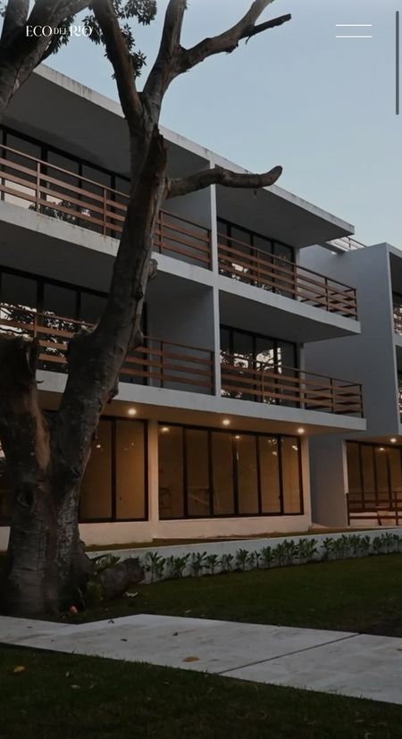 Eco del Río es un conjunto residencial de 12 departamentos, distribuidos en 3 niveles, con terrazas amplias y vistas al río en todas sus unidades.
