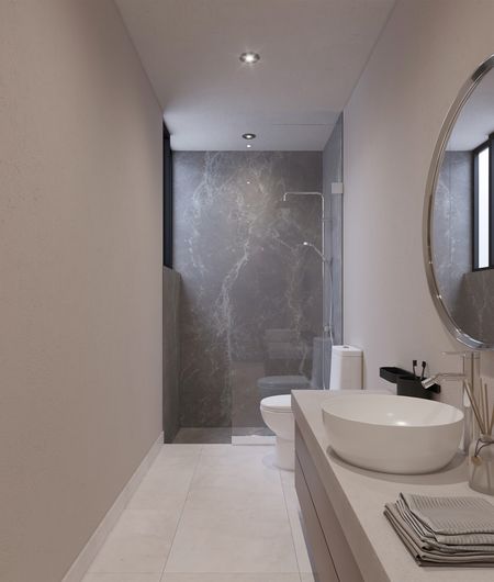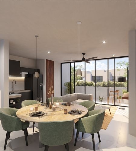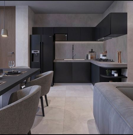 4.- Cocina integral en L con estufa eléctrica y tarja.