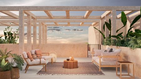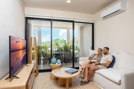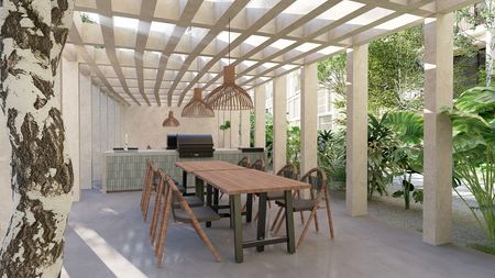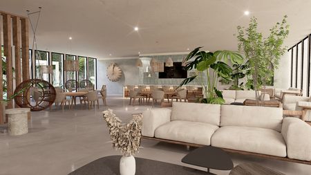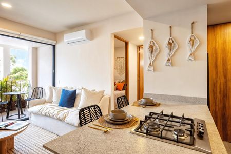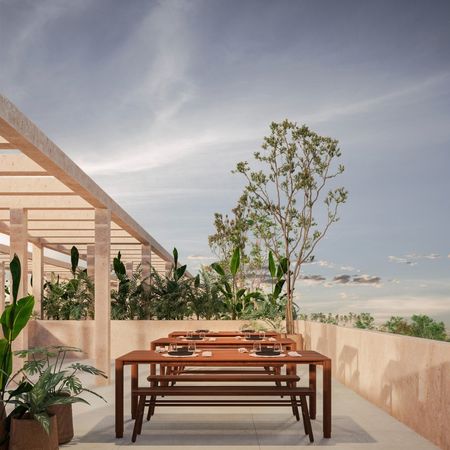 Departamentos con terraza desde 49 m² hasta 75 m², de 1 y 2 recámaras, dentro de un concepto que ofrece más de 20 amenidades y 17,000 m² de áreas verdes, entre ellas: alberca familiar, yoga deck, fitness club, canchas de pádel, spa, work spots, business hub, pet park y zonas de relajación.