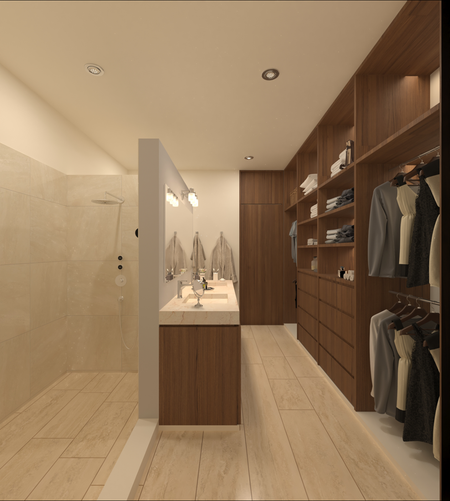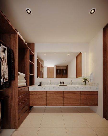 Closets vestidos, cajones inferiores en cocina y meseta de baño.