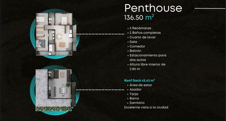 - Roof deck con área de estar, asador, tarja, barra, sanitario t con excelente vista a la ciudad.