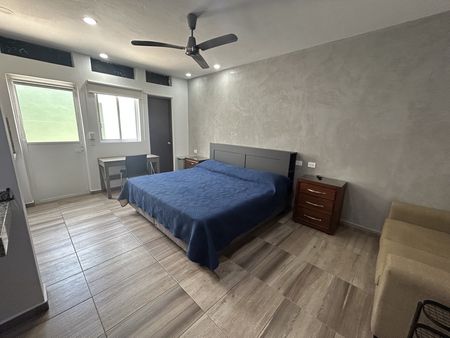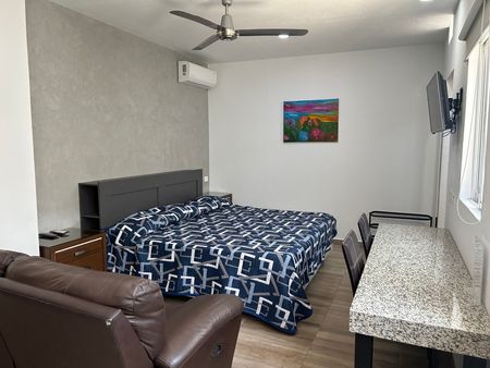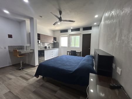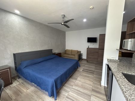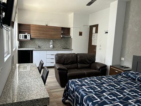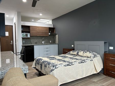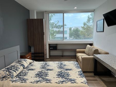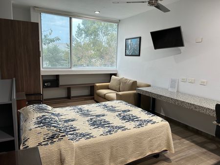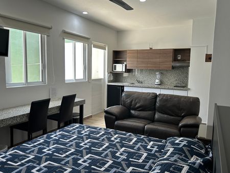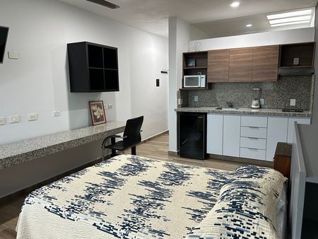 Cada suite tipo estudio está amueblada y equipada, lista para renta inmediata, y cuenta con: