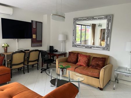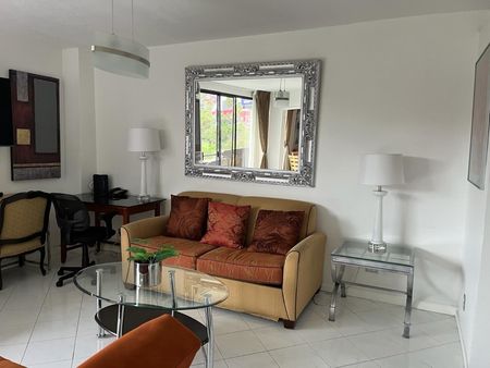 con vista al campo de golf 1 recamara y 1 baño. 1 estacionamiento en el sotano . Aire acondicionado en sala y recamara . RENTA $1,600.00 incluye internet y servicios ( agua - luz - gas - internet- mantenimiento