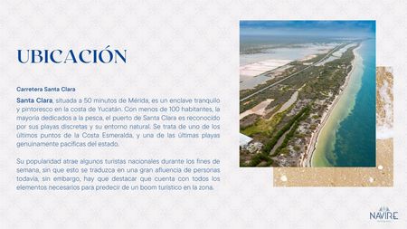 Nestled in the tranquil fishing harbor of Santa Clara, a mere 50-minute drive from the vibrant city of Merida, NAVIRE presents an exceptional opportunity to own a piece of the pristine Yucatan Caribbean coastline. This exclusive beachfront development features 400 residential and commercial lots, each promising a unique blend of serenity, natural beauty, and investment potential along the sought-after Caribbean shores of Yucatan.