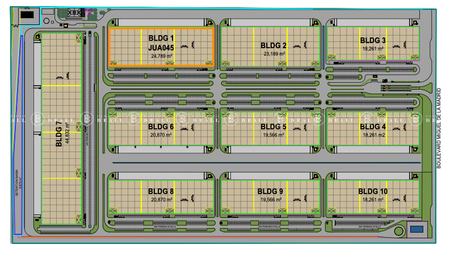 • Industrial park features include all concrete car parking, internal roads, truck maneuvering areas, and efficient access through reversible entry and exit lanes