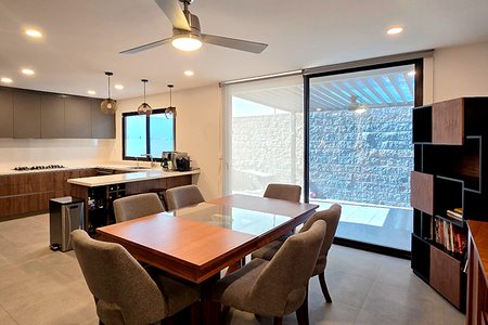 La Casa Modelo Jayu es la más amplia dentro del Residencial El Olmo, ubicada en el Nuevo Refugio de Querétaro. Se distingue por su diseño moderno y funcional, con espacios generosos que integran sala, comedor y cocina en un concepto abierto. Cuenta con múltiples recámaras de excelente distribución, baños completos, área de servicio y estacionamiento. Su arquitectura prioriza la iluminación natural y la ventilación, ofreciendo comodidad y amplitud para familias que buscan un hogar versátil y elegante dentro de un entorno residencial seguro y bien ubicado.