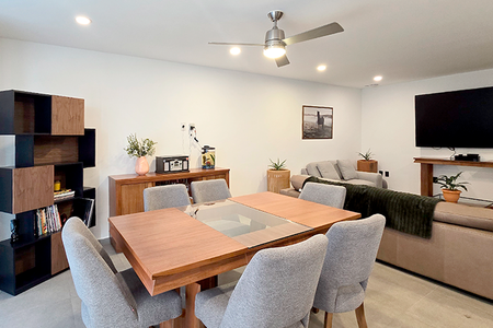 Ventilador en comedor y patio trasero