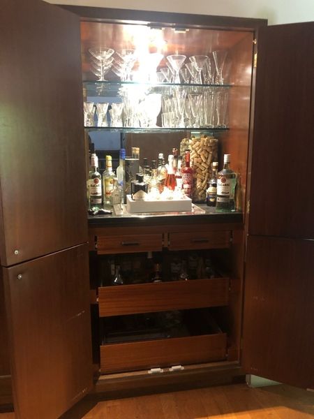 oficina con chimenea, cocina, alacenas, lavandería, closets para blancos, maletas, etc....bar refrigerado para vinos (180 botellas) y bar para licores.