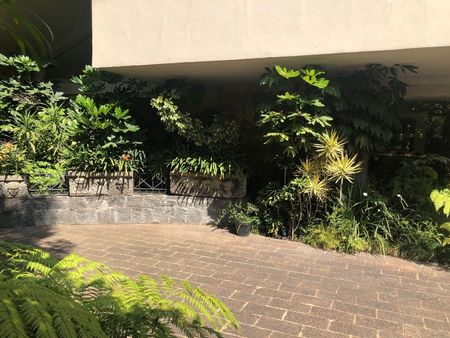 Hermoso y amplio jardín con árboles de jacarandas, helechos, bugambilias y frutales que envuelven la casa además de brindar cierta intimidad. La casa fue totalmente remodelada en 2017