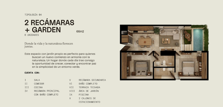 2 RECÁMARAS + GARDEN: 66 m2 (6 unidades)