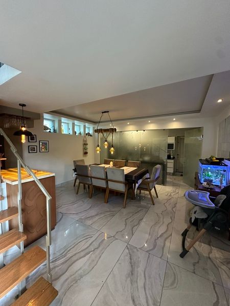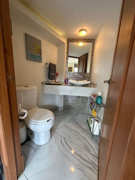 1 er nivel 2 estacionamientos techados ,cocina integral,sala ,comedor y área de bar con alacena amplia 1/2 baño