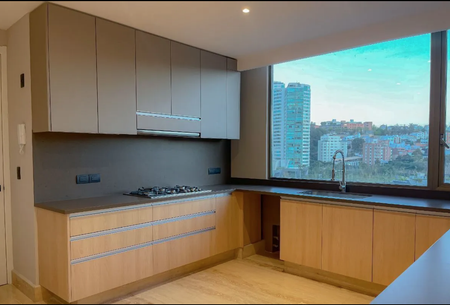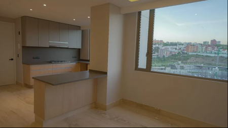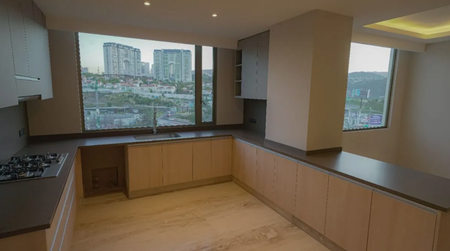 Precioso departamento de lujo con doble altura, recibidor con elevador directo al piso, estupendas vistas, con amplia terraza en el área social.