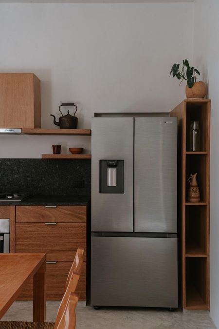 Cocina equipada con estufa, horno, refrigerador y lavavajillas