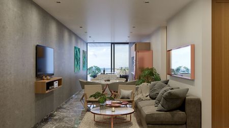 Este edificio habitacional de lujo, cuenta con 25 departamentos con vista al mar caribe, un semi sótano de estacionamiento y un espectacular roof garden común. Los departamentos están distribuidos en 19 departamentos de 2 recámaras, 3 penthouses de 2 recámaras con roof top y alberca privada y 3 estudios.