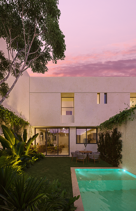 Hermosa casa en Residencial Patio Carey Modelo Nardo, ubicados en Temozon Norte una de las zonas con mayor plusvalía en Merida, la casa cuenta con la siguiente distribución: 1er. Nivel estacionamiento techado para 2 autos, sala, cocina-comedor, baño de visitas, patio con piscina y bodega. 2do. Nivel recámara principal con baño completo, closet vestidor, recámara secundaria, con baño completo y closet vestidor y estudio 3er. Nivel cuarto de servicio con baño completo, área de lavado y Roof top Entrega Enero 2024