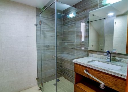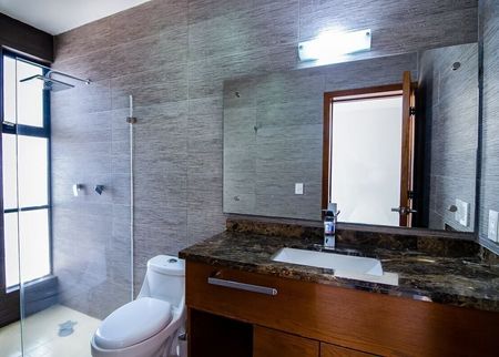 desayunador cubierta de granito ,1 recamara con baño completo (opcional cuarto de tv) equipada con aire