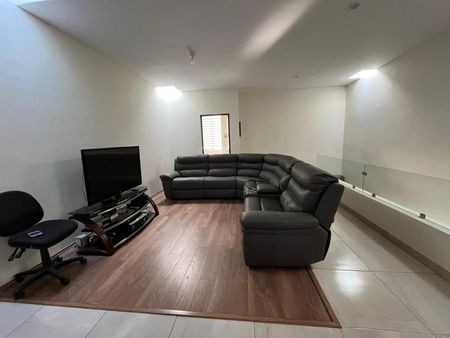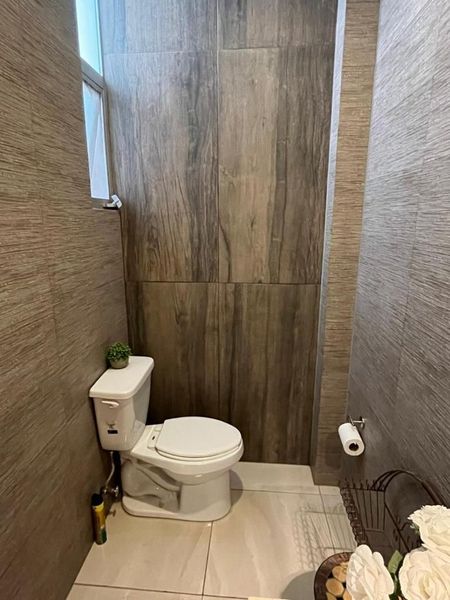 Estudio o recámara extra en Planta Baja, cuatro baños completos y medio baño, cochera para tres autos, cuarto de servicio, área de servicio.