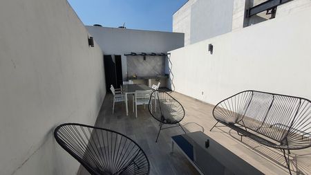 El edicificio cuenta con elevador, vig. las 24 hrs., Roof Garden común de aprox. 40 m2. con baños comunes para hombres y para mujeres. Ubicado en esquina con Cto Interior Melchor Ocampo, muy cerca de Ángel de la indepencia, Metro Sevilla, y del bus Rio Misisipi y eje 2 Rio Tiber.