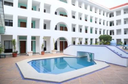 En sus instalaciones se encuentran una alberca grande, cafetería, restaurante, bar , terrazas y salones de eventos.